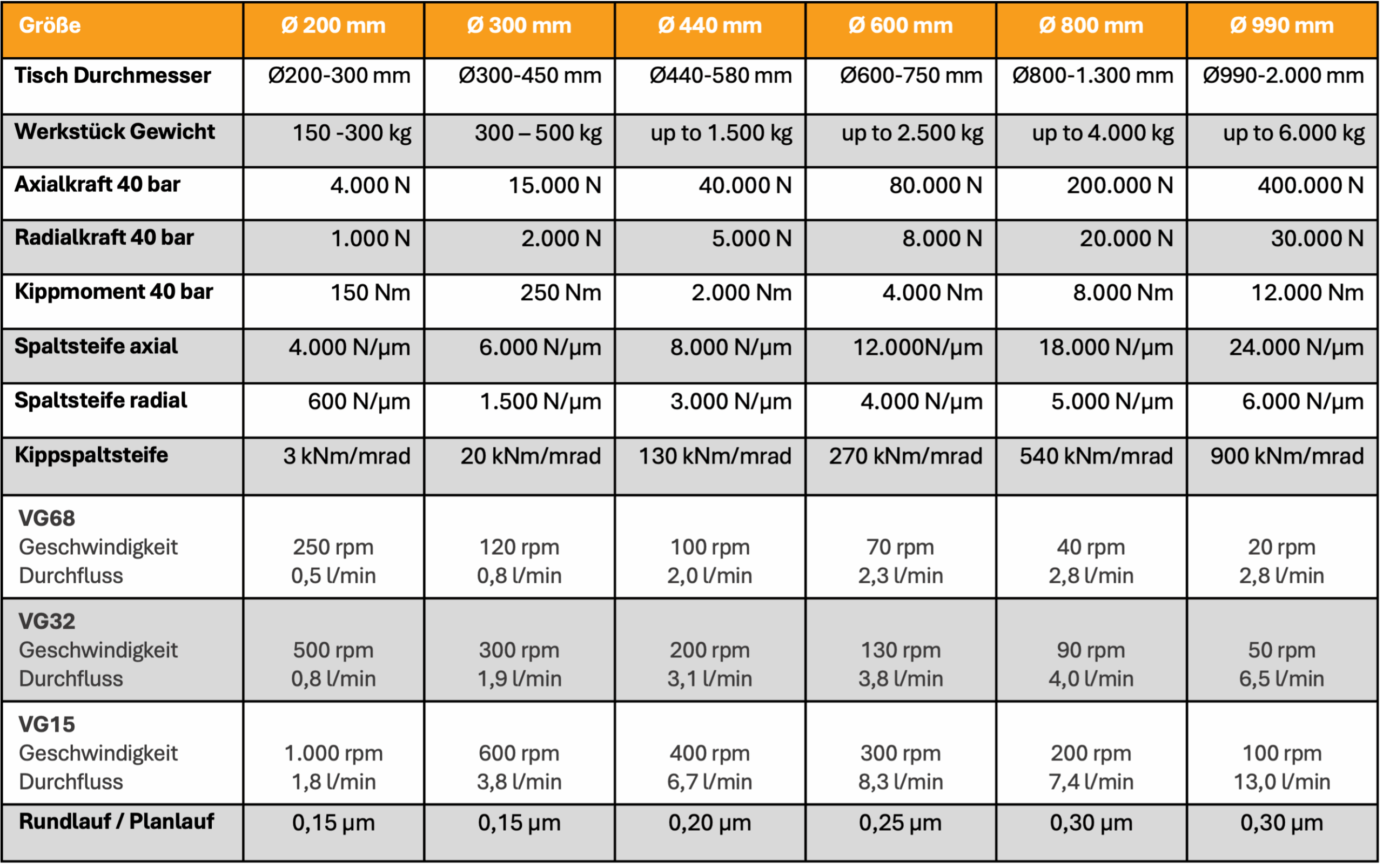 Merkmale eines hydrostatischen Rundtisches